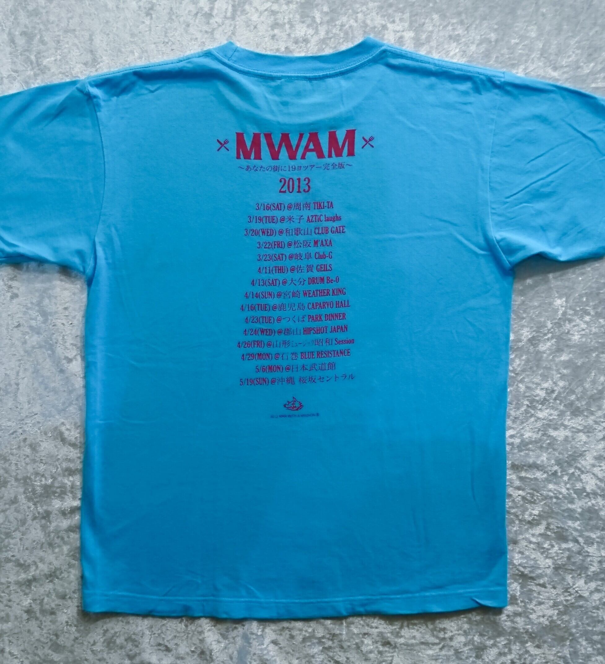 MAN WITH A MISSONの2013年のツアー「あなたの街に19ヨツアー 完全版」のTシャツの限定カラーのマリンブルーです。