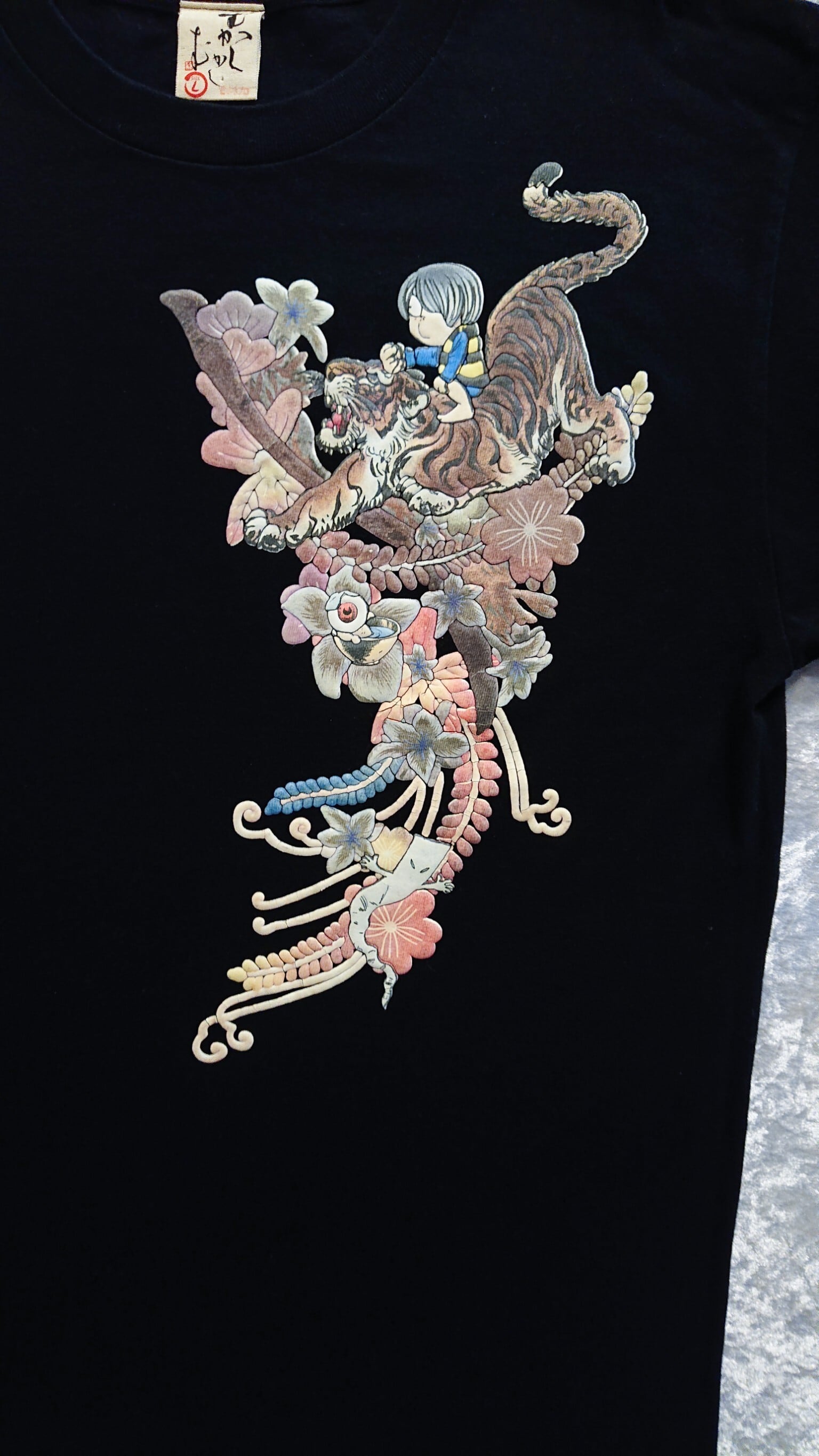 京都の和柄専門ブランドむかしむかしと水木しげるコラボのゲゲゲの鬼太郎Tシャツです。